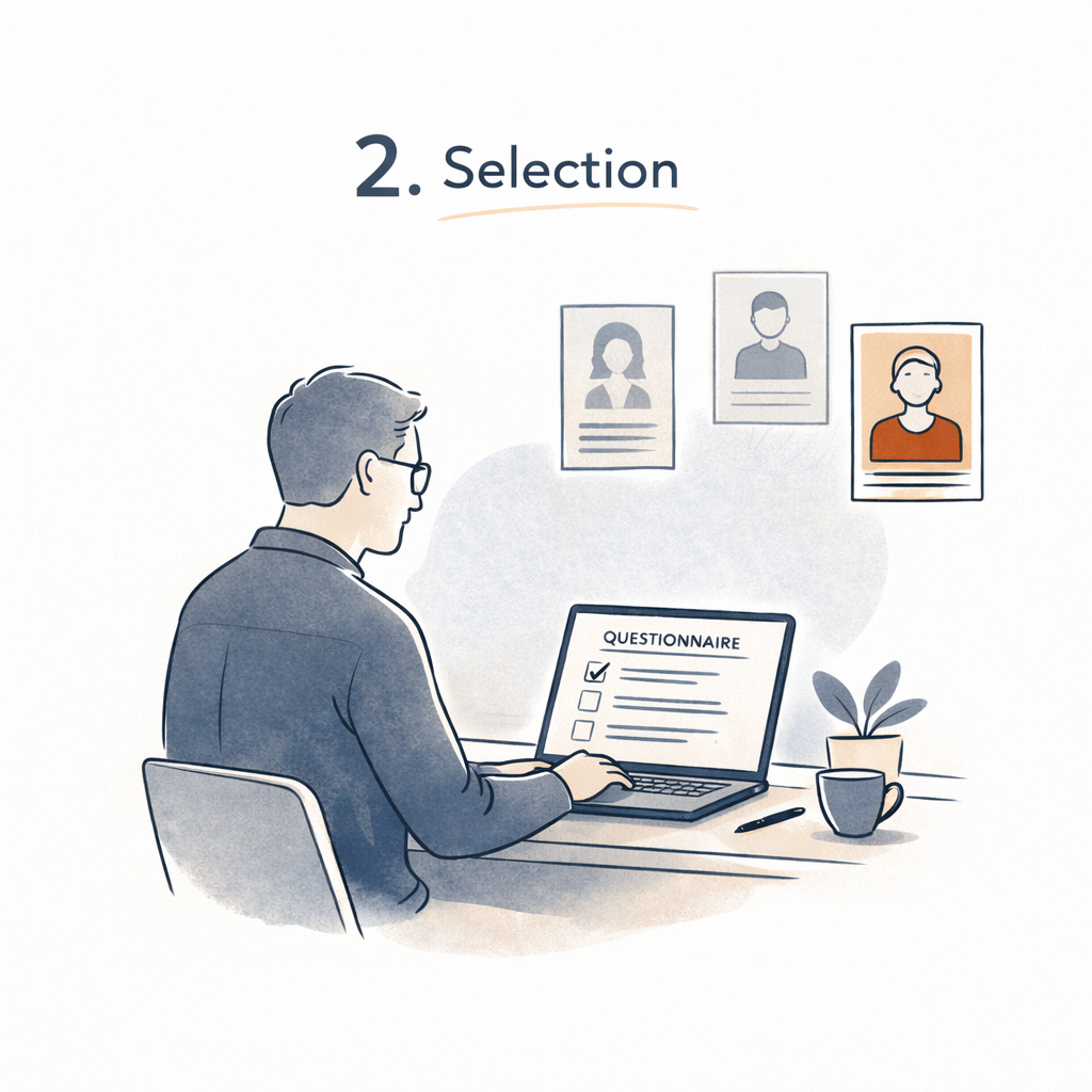 Selected participants complete identity and presence verification to ensure sincerity, safety, and mutual respect.
